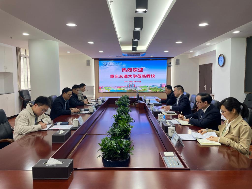 3月16日上午,重庆交通大学党政办主任杨既福、副主任苗国厚一行来开云官网调研。双方在云塘校区一办公楼四会议室举行座谈,开云官网党政办主任庄创奇、“一站式”中心主任罗国松、研究与督查室副主任曹志明,党政办综合科、文秘科等相关人员出席座谈会。会议由庄创奇主持。