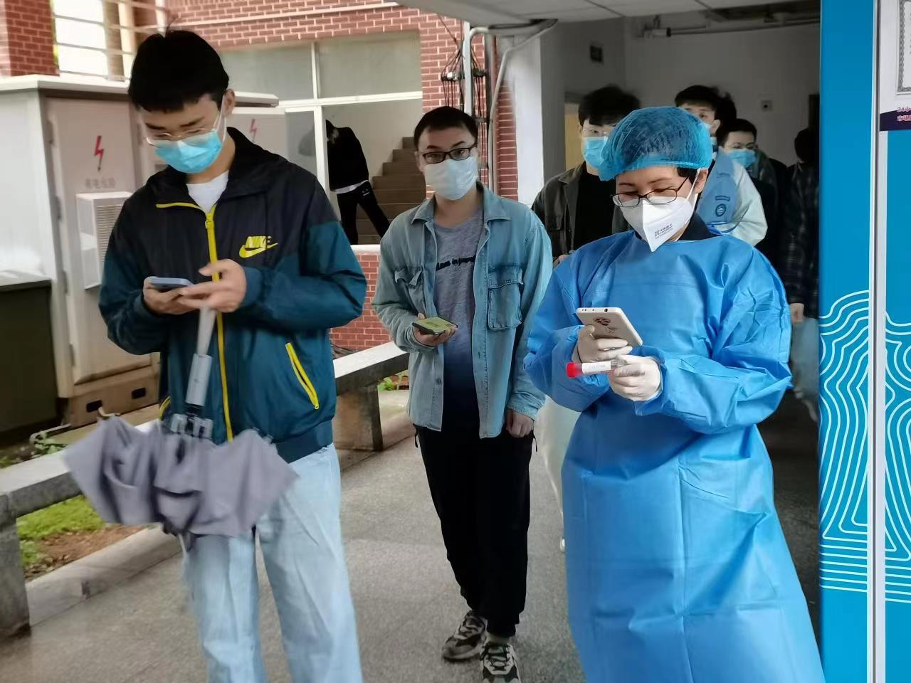 刘燕妮同志在学生宿舍组织学生进行核酸检测