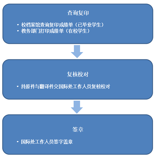 学生出国成绩单、学历学位证书中英文校对工作流程