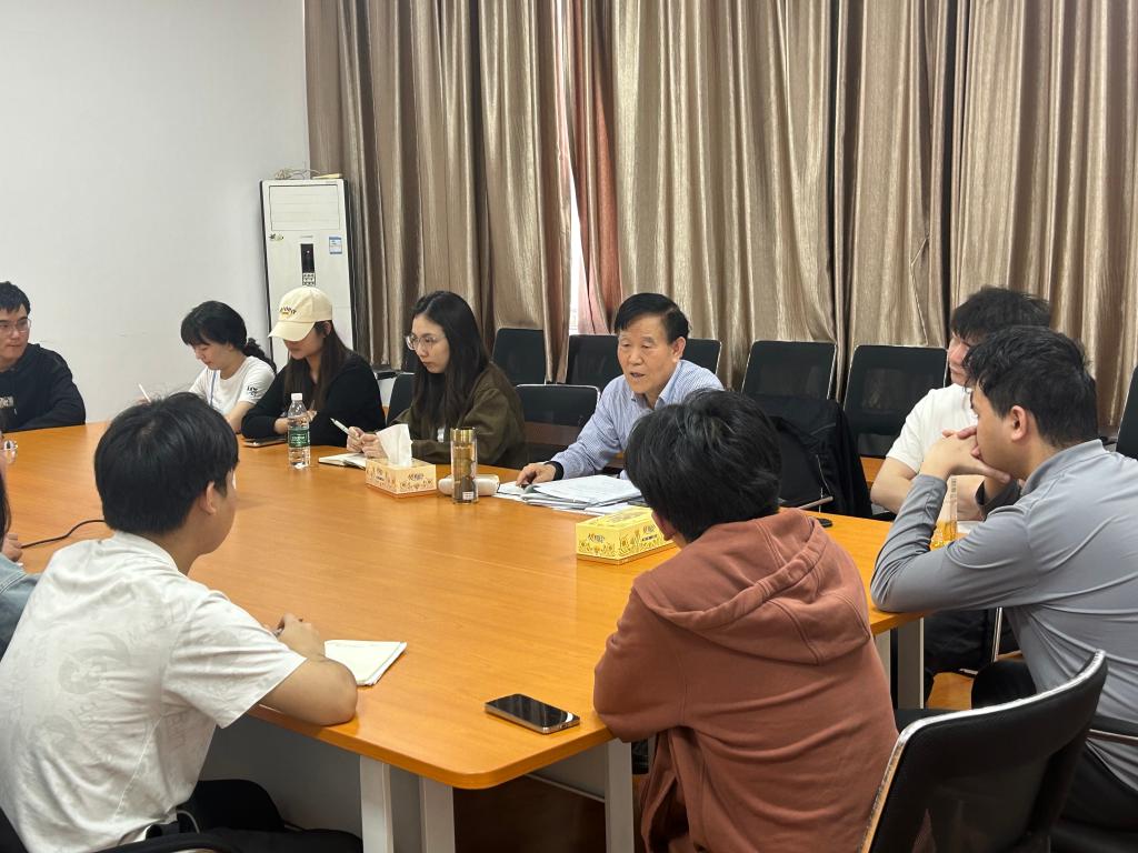 王乃厚和大家共同学习教育部关工委《关于印发高校二级学院设立学生委员试点工作总结暨推进会会议纪要的通知》,向大家详细介绍了关工委职能,并对学生委员职责作详细说明。