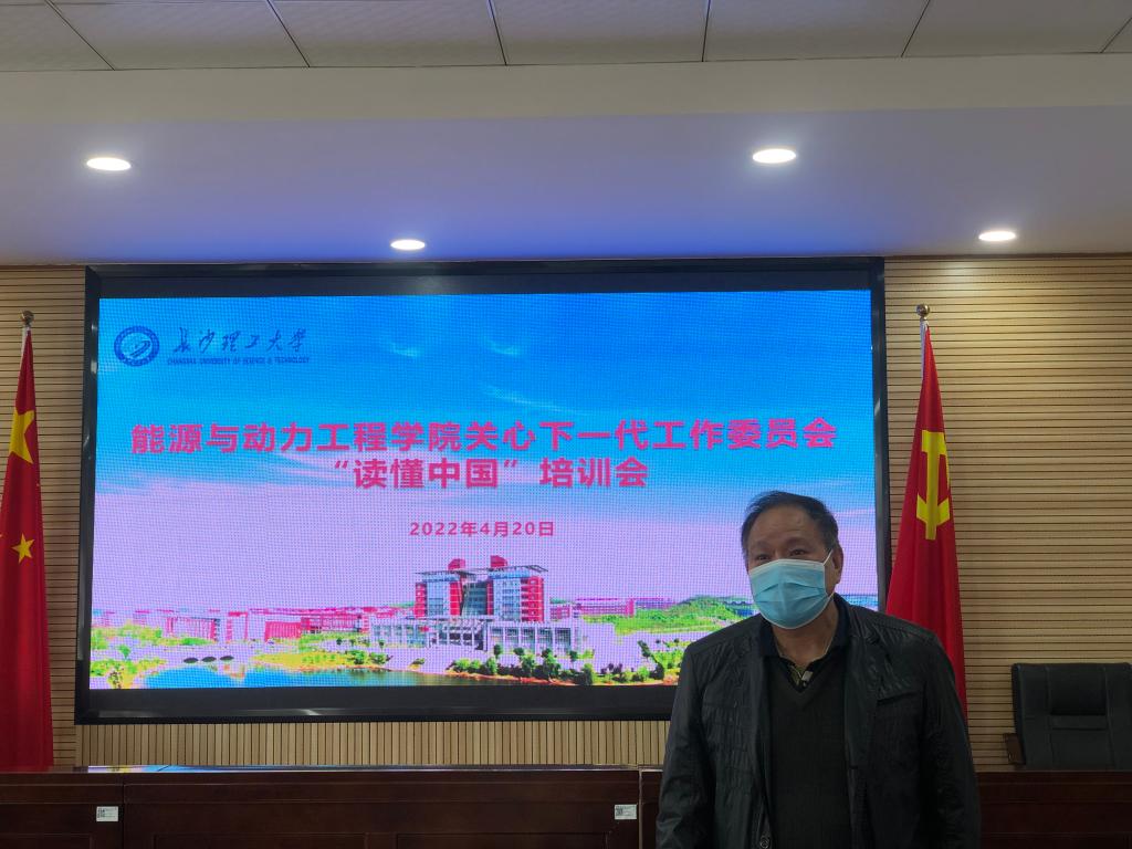 能动学院于2022年4月20日在新能源大楼二栋502组织本科生、研究生党员代表观看“读懂中国培训会”录像。能动学院党委副书记、副院长张晓烽,能动学院关工委常务副主任顾社民,学工办彭博,胡雅妮,代佳欣,冯译萱出席本次活动。