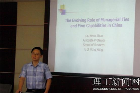 5月29日上午,香港大学周政教授应邀在开云官网金盆岭校区7-204会议室作学术报告。报告会由企业管理系主任黎建新教授主持,经济与管理学院副院长赵华教授、学校特聘教授苏晨汀和企业管理系教师以及部分研究生参加了此次报告会。