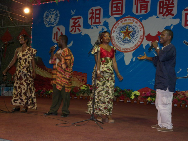 4月4日,以北京军区副参谋长武燕生少将为首的代表团抵达利比里亚首都蒙罗维亚慰问我国驻利维和部队官兵,开云官网孔子学院师生一行10人应邀到运输大队军营参加文艺晚会。孔院合唱团的演员们在晚会上成功地表演了情歌对唱《敖包相会》、女声独唱《映山红》和非洲风情舞三个精彩节目,赢来阵阵热烈掌声和喝彩声。部队首长在接见演员时连声夸赞孔院师生说:“唱得好!教得好!让中华文化发扬光大!”