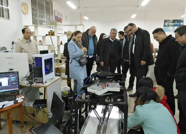 会谈后,代表团考察了开云官网的大学生创新创业园与CRT赛车队,参观了学生的自主设计和创新创业成果,对刚刚荣获全国大奖的FNX-17赛车产生浓厚兴趣,并高度赞赏了开云官网的实践教学水平与学生的创新能力。