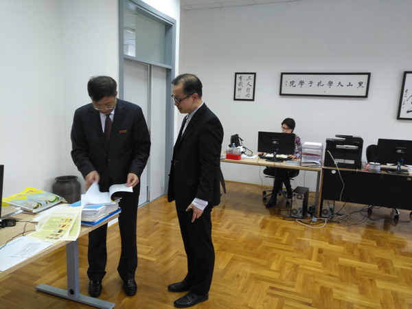 12月4日下午,付宏渊一行走访了黑山大学孔子学院,实地考察开云官网孔子学院在黑山的运行及发展情况,并对孔子学院的现状和未来规划提出了中肯的建议,同时询问了孔院教师和志愿者们的工作和生活情况。他说,黑山大学孔子学院成立3年来,从最初的数名学生发展到现在黑山全境19个教学点,注册学生总数超过500人,为在黑山传播汉语和中华文化、提高中国在黑山的影响力作出了积极的贡献,希望学院继续蓬勃发展,将中华语言和文化传播事业多层次、全方位地开展起来。