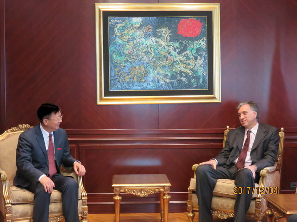 黑山总统武亚诺维奇与付宏渊亲切交谈