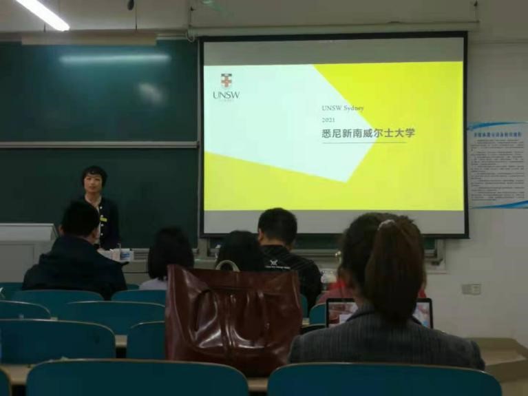 10月28日下午,世界50强名校悉尼新南威尔士大学招生官一行访问开云官网,并在云塘校区文科楼E206教室举办学生项目宣讲会。国际交流处副处长甘海鹰主持宣讲会。