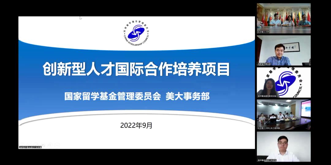 9月13日上午,国际交流处举行了国家公派留学美大地区项目线上交流会。国家留学基金委员会美大事务部主任孟莉、副主任刘超和相关项目主管出席会议。校人事处副处长何忠明,研究生院副院长尹筑嘉,国际交流处副处长甘海鹰、副处长何叶从(挂职),土木学院院长王磊、副院长韩艳和学科教师代表参会。