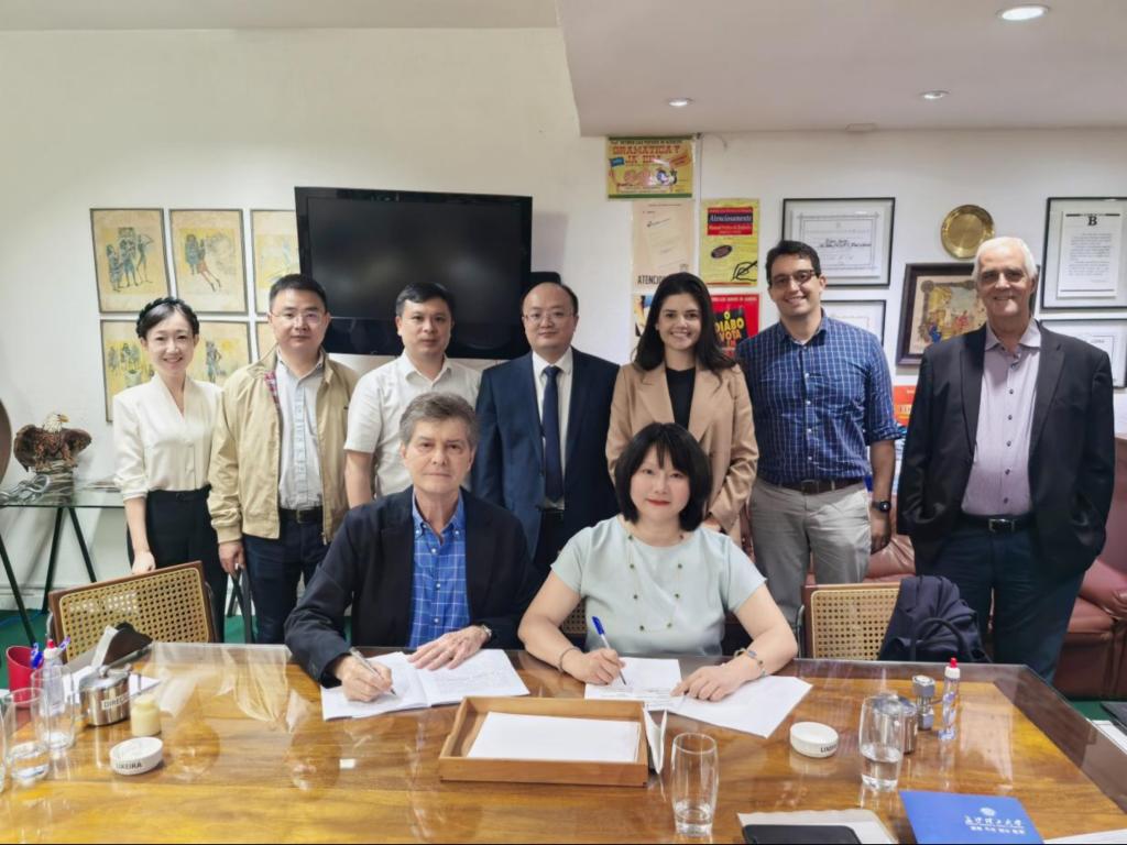 代表团在坎迪多·门德斯大学期间,与该校校长安德斯·门德斯及相关学院负责人就政治经济学学科发展、师生互访项目实施、智能制造学科人才培养等方面进行了全面交流。双方达成高度合作意向,并签署了智能制造专业师生交流和联合科研申报合作协议,为两校在智能制造领域的合作搭建了桥梁。
