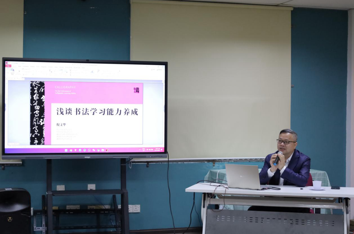 湖南省文联副主席倪文华为孔院师生及当地文化爱好者进行书