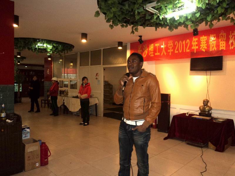来自尼日利亚的留学生云俊杰代表全体留学生在团拜会上演唱了中文歌曲表达对大家的新春祝福,受到了热烈欢迎。