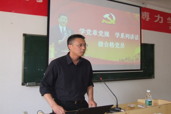 蒋昌波副校长从开展“两学一做”学习教育的重要意义、学习党章党规、习近平总书记系列重要讲话精神的内容及如何做合格党员四个方面,并结合学校中心工作实际、典型案例及自己学习党章的心得体会阐释了党章的基本精神和深刻内涵。