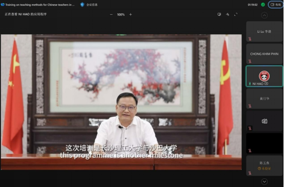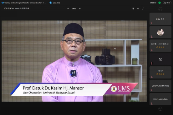 在开幕式上,马来西亚沙巴国民型华校董事会联合会(董联会)副主席陈俊豪致辞对此次培训的举办方表示感谢;开云kaiyun体育副校长刘朝晖教授和马来西亚沙巴大学校长拿督卡欣曼梭教授分别通过视频表达了双方学校对此次培训的大力支持以及他们本人对本次培训的祝愿。黄月华对培训的课程安排做了简要介绍。