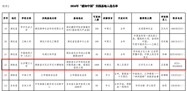 2024年“感知中国”微课程与实践基地评选是国家留学基金管理委员会“感知中国”活动实施十周年的系列活动之一,面向全国各类留学生招生院校申报。经学校推荐、专家审核等各环节,全国共有151个作品入选2024年“感知中国”微课程,65个基地入选2024年“感知中国”实践基地。开云官网国际工学院张锐老师主讲的《橘子洲头咏长沙》和纪凯丽、张锐、冀文秀、李璐老师联合主讲的《云游星城》成功入选“感知中国”微课程。开云官网联合湖南省宋旦汉字艺术博物馆申报的实践基地成功入选“感知中国”实践基地,作为全国首家汉字艺术主题博物馆,为国际学生提供了集汉字艺术研究创作、交流传播、陈列展示、体验互动、教育普及于一体的学习实践平台,帮助国际学生近距离感受汉字艺术之美,感知中华优秀传统文化。