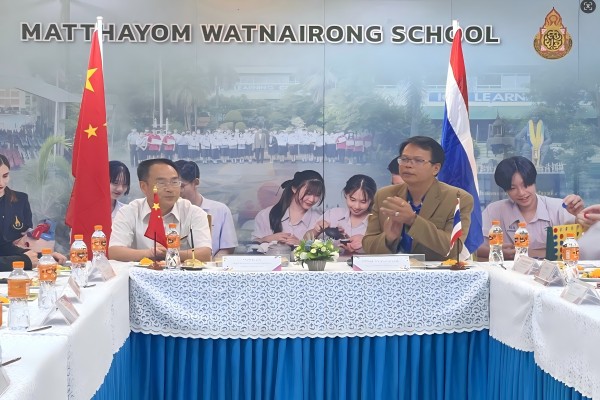 12月20日上午,代表团在Thapanut Udomsree博士和Janejira Sae-Tung主任的陪同下,前往Matthayom Watnairong School中学。校长Kittisak Sripatumanurak及其团队对代表团进行了热情接待,学生们通过舞狮和舞蹈表演表达了欢迎之意。代表团开展了招生宣讲,并就推荐优秀毕业生来校留学及夏令营项目与校方达成高度合作意向。