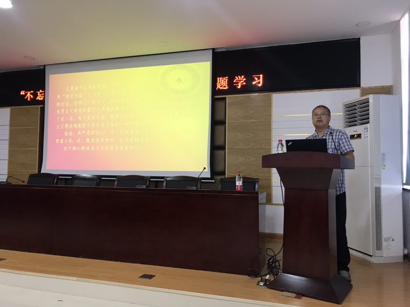为深入推进“不忘初心、牢记使命”主题教育开展,庆祝中华人民共和国成立 70 周年,9月24日下午三点,校马克思主义学院刘解龙教授到工一B417为我们讲授“不忘初心、牢记使命”主题教育党课。国际学院部分师生、汽机学院全体教职工、部分党员代表聆听党课。汽机学院党委书记邱国良担任主持人。