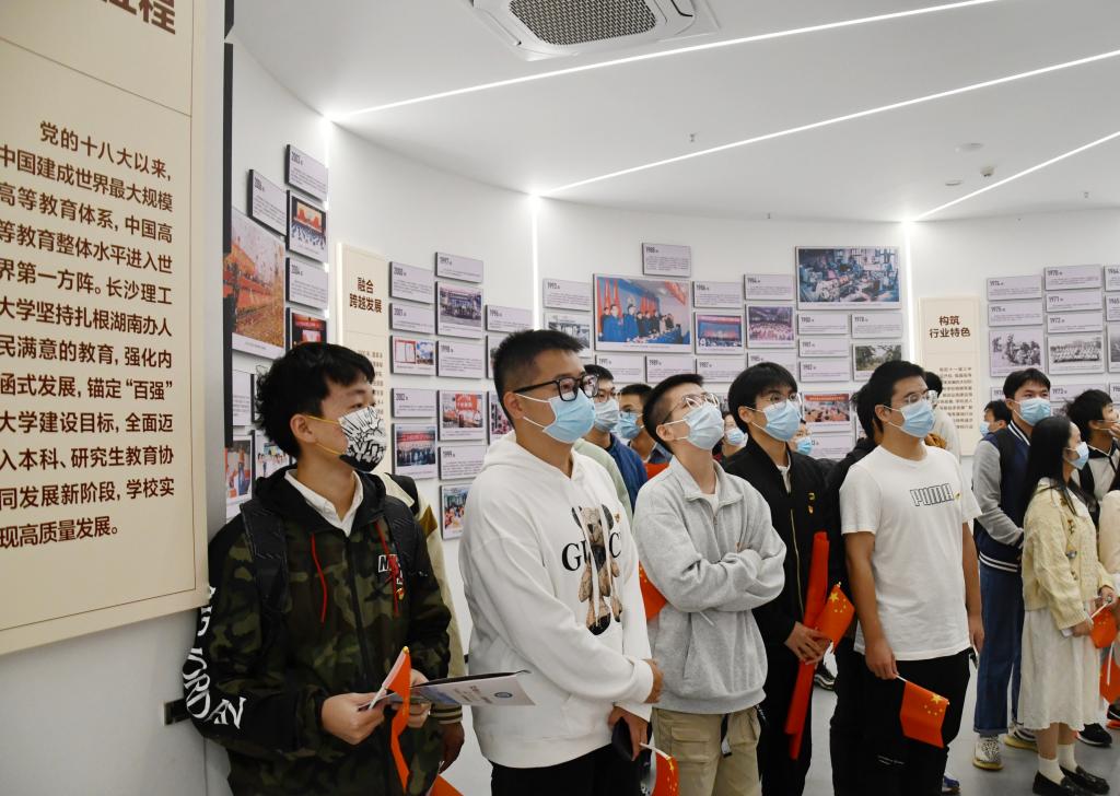 在讲解员的引导下,学生党员们参观了“国之大者”“材之茂者”“师之贤者”“行之实者”四个篇章;抚摸“学科树”、瞻仰“名师榜”、置身“榜样厅”、惊叹“荣誉墙”,又穿过66年的时空隧道。学生党员曲梓涵表示,他在第二课堂上感受到党与国家的教育事业取得的历史性成绩,感受到学校先进的育人理念,深受鼓舞与教育;学生党员许家俊表示,了解了前辈的事迹后,他更加渴望投身于爱国主义事业中,为实现中华民族伟大复兴中国梦贡献力量;学生党员李坤恒表示,他深切体会到“脚踏实地、艰苦奋斗、乐于奉献、锐意进取”的真正含义,对于为祖国献出自己的宝贵青春和奋斗在祖国建设一线的长理学子怀有崇高的敬意,并决心践行。