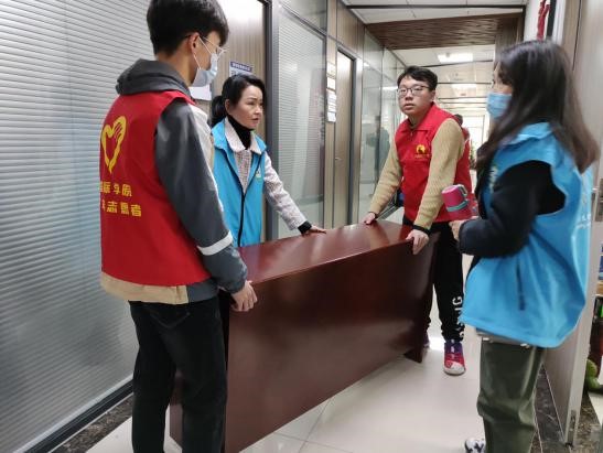国际学院的七位志愿者抵达活动现场后便帮助社区完成PPT及音响设备调试、搭建展板、向来往居民宣传专家义诊、协助社区工作者进行场地布置等工作。为帮助前来参加讲座的行动不便、不了解场地布置的老年人,国际志愿者们主动等候在电梯前,随时准备将爷爷奶奶带入电梯,并引导进入会场、签到落座。活动尾声,国际志愿者协助维持医生义诊时现场的秩序。整场活动中,国际志愿者们的“红色马甲”出现在场地的各个角落,充分地彰显了国际青年对为人民服务、进行社会实践的热情。