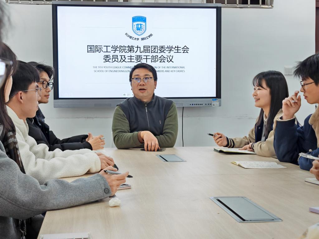 2月25日下午,国际工学院在文科楼E410会议室召开第九届团委学生会委员及主要干部会议。学院党委副书记兼副院长黄黎明、团委书记吴紫怡出席,第九届团委学生会主要学生骨干参加。