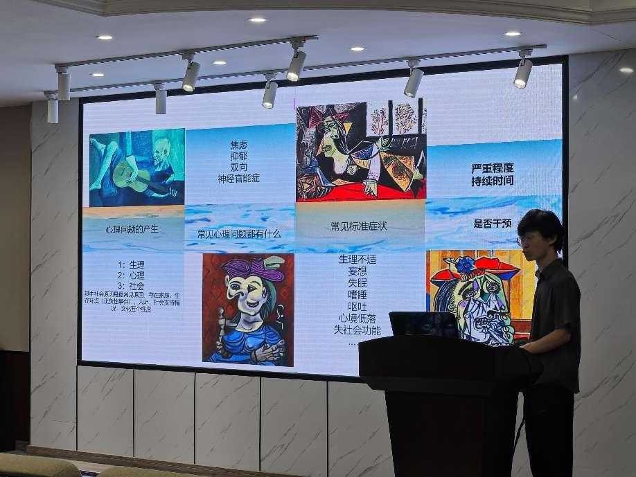 常恒语同学首先介绍了心理问题的产生原因。接着,常恒语同学详细讲解了常见心理问题的表现。他强调,心理问题的产生并非单一因素所致,而是多种因素相互作用的结果。在培训过程中,常恒语同学通过互动提问的方式提高了同学们对心理问题的认知。他指出,当自己或他人遇到心理问题时,应该首先保持冷静和理性,尝试通过有效沟通来解决问题。他建议同学们在面对压力和挑战时,可以通过运动、冥想、呼吸练习等方式来缓解紧张情绪。
