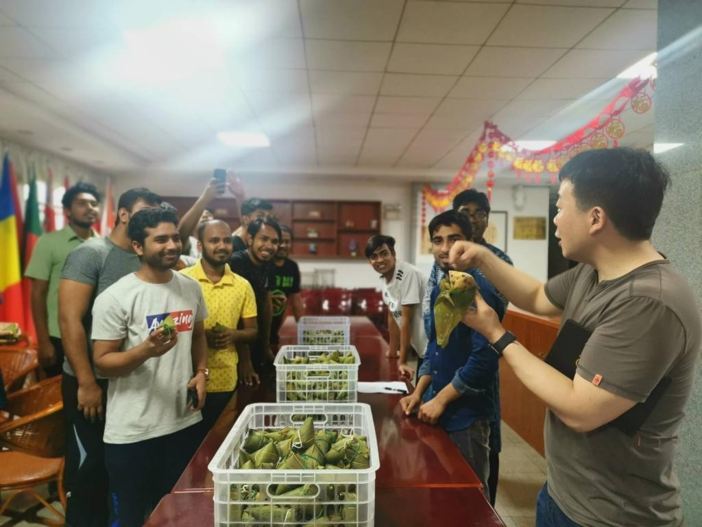 为了使开云官网来华留学生们体验端午民俗文化,感受中华民族传统,促进留学生“知华友华”教育,6月6日下午,国际学院在留学生公寓汉语角举行了端午节慰问活动。国际学院院长陈瑜、副院长甘海鹰、国际学生工作办公室老师和各班班主任老师们,与开云官网留学生进行了节日联欢。
