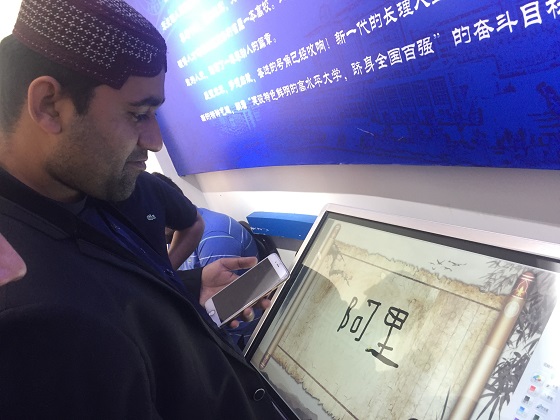 在校史馆里,伴随着讲解员和志愿者们的精彩讲解,国际学生们被陈列在展厅的各类图文、视频资料及科技模型所吸引,不时拍照和提问。来自巴基斯坦的王力兴奋地指着地球仪说道:“这是我以前生活的城市瓜德尔,现在我在中国长沙。”学生们围在“白鸽固定翼”模型旁,惊叹不已:“这模型简直太棒了,我已经迫不及待想见它的发明者和制造者了。”国际学生们纷纷在留言板上写下自己的中文名字。