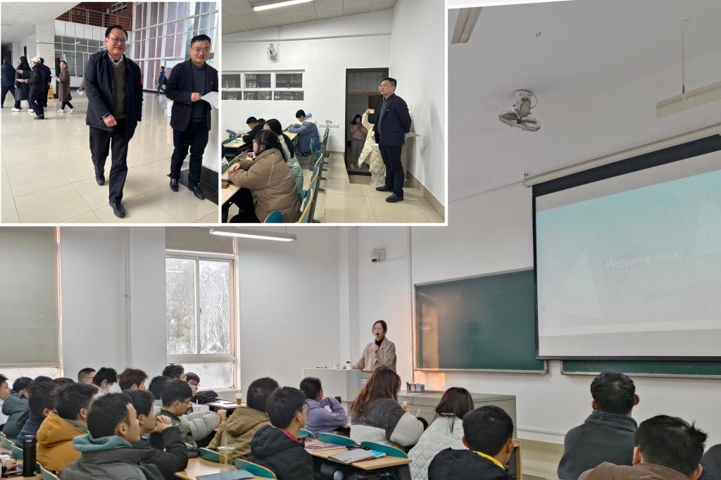 2月20日早上,副校长刘朝晖、院党总支书记王学成、党总支副书记乔法光,副院长吴悠及学工办、教务办等相关老师分成五个检查小组,深入云综教、云工一、云工二、云工三等教学楼,对中外合作项目、教改班等11个教学课堂以及留学生两个网课的开课情况进行了检查。