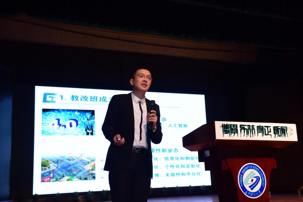 新生班主任代表电气学院陈春博士发言,他希望全体新生在人生新起点,树立远大理想,拿出直面困难的勇气,迎接人生风雨的洗礼,在“9.18”这个特殊的日子里,勿忘国耻,吾辈自强。