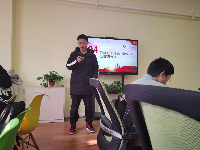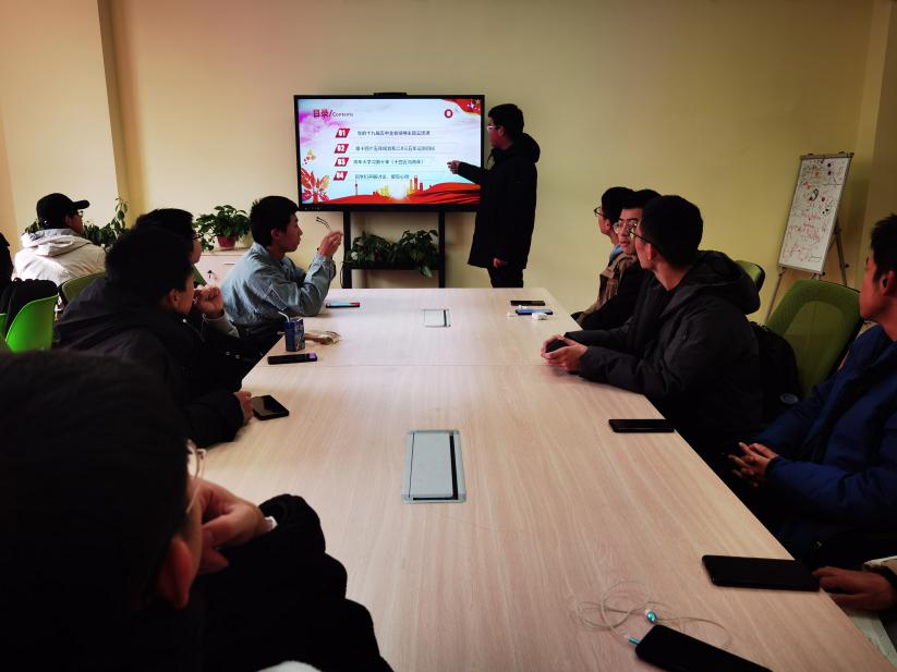 同学们在团支部书记赵胜祥与班长李家鑫的引领下,学习党的十九届五中全会精神与第十四个五年规划,2035年远景目标。赵胜祥提醒大家要认真对待学习,热情参与活动,积极向党团组织靠拢,主动学习相关理论知识,在同学中起到先锋模范作用。