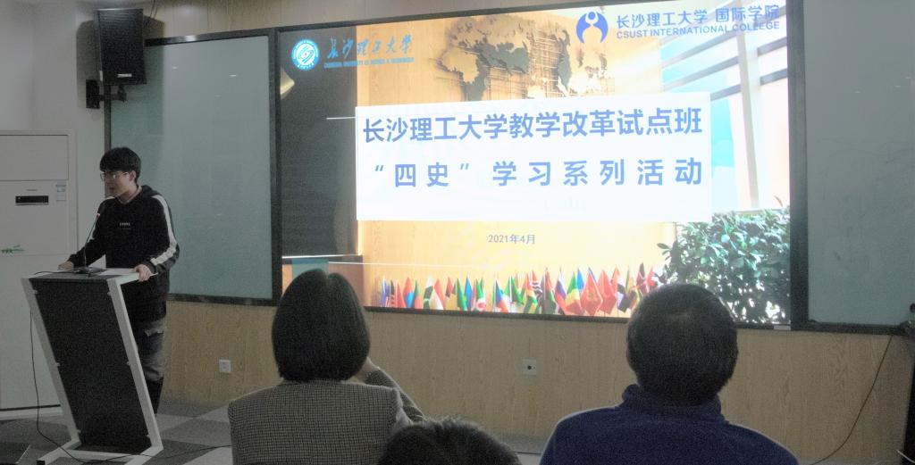 2021年4月16日晚,开云kaiyun体育国际学院2019级和2020级教改班全体同学在新能源大楼402教室开展本学期第二场“四史”学习系列活动。校团委书记王学成、国际学院党总支副书记张锐出席。本次活动由2019级教改班团支书张家明和韩璐主持。2019级第一批入党积极分子代表以“百年瞬间、中国精神”为主题展开分享。