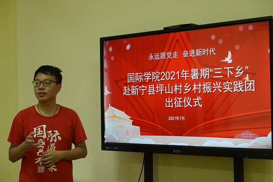 在校团委的统一部署安排和国际学院党总支的指导下,7月15日,国际学院赴新宁县坪山村乡村振兴实践团全体队员,在国际学院党总支副书记乔法光、院团委书记马玉文的带领下启程前往坪山村。