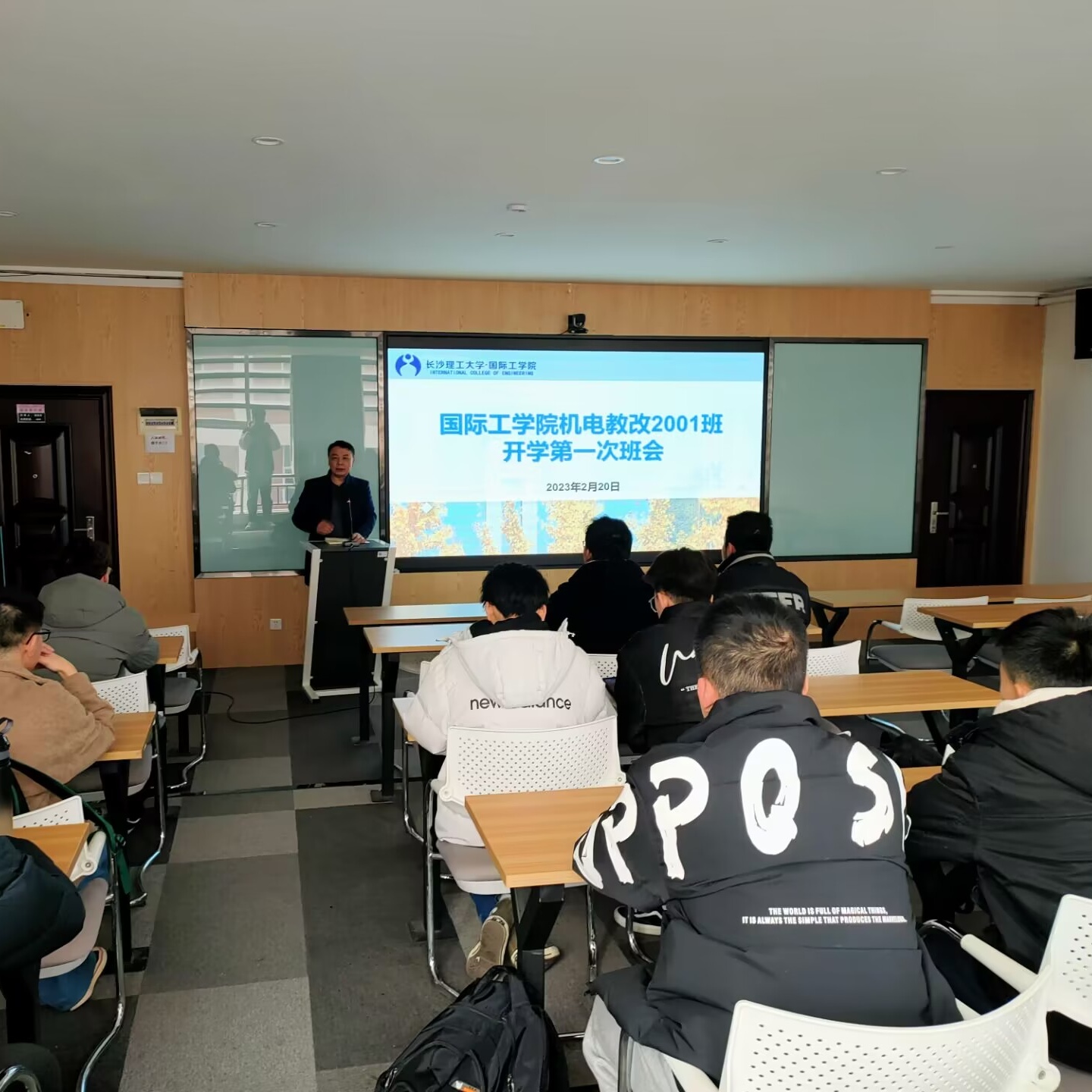 2023年2月19日晚,国际工学院组织召开“启航新征程,青春正当时”为主题的新学期第一次班会。学院辅导员、各班班主任、全体学生分班级参加此次班会,班会由各班班长主持。