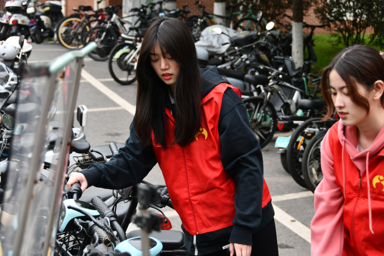 由国际工学院2021级、2022级的15名志愿者们分成两批小队分别前往弘毅轩二栋与17栋学生宿舍周边开展志愿服务。每位志愿者在自己负责的区域各司其职,积极引导停车的同学遵守停车秩序、规范停车并保持停车场整洁有序。忙碌的身影穿梭在自行车与电动车之间,整个停车区域变得整洁规整,焕然一新,改善了交通环境。