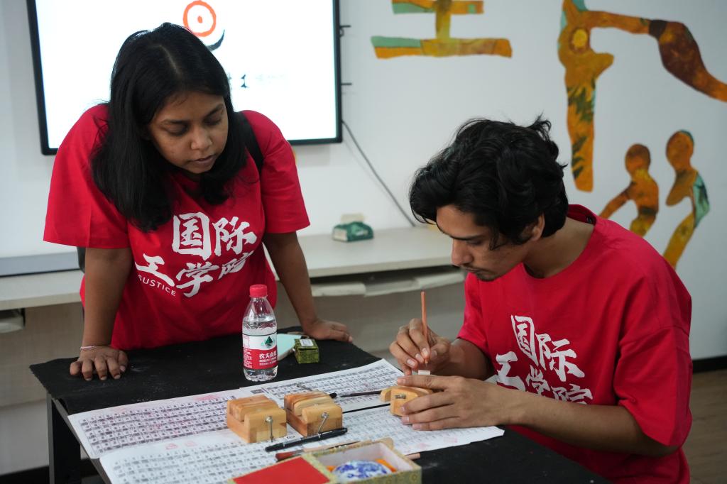 在活动中,来自越南的黄玉天庄同学有感触地说:“中国汉字博大精深,我看到宋旦老师创作的有舍才有得,就如鱼与熊掌,我们无法两者兼得,世界上有这么多不同的国家和民族,我们同住一个地球村,如果大家能够求同存异,尊重不同的文化习俗,那么我们一定会得到一个更和平的世界。”来自苏丹的周凯同学也动情表达,他说:“在中国生活、学习的这段时间里,我收获了老师、朋友们无微不至的关照,他们用心爱着我,让我相信汉字拥有最强大的疗愈功能,让我能敞开心扉,更快地融入到全新的环境之中。”