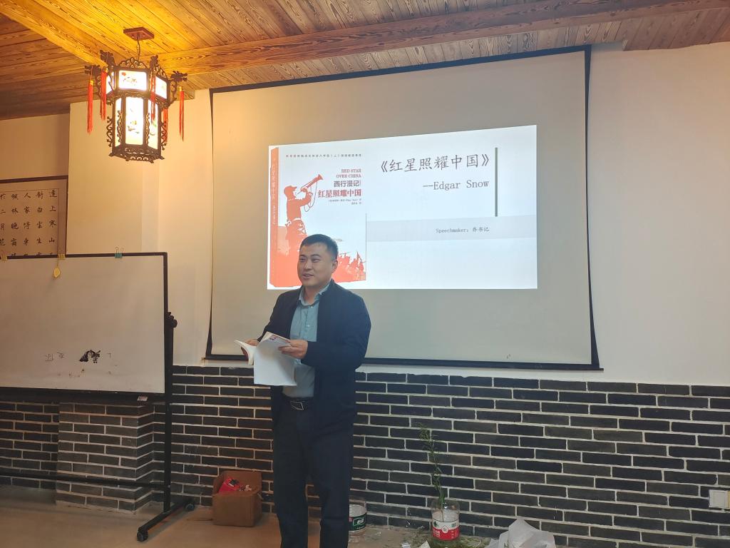 活动的最后,学院党总支副书记乔法光用双语推荐了《红星照耀中国》,并为中外学子朗读了部分选段。乔书记鼓励学生们参加“一校·一书”等故事活动,在书籍的海洋中扩展视野,成为中国文化的传播者。