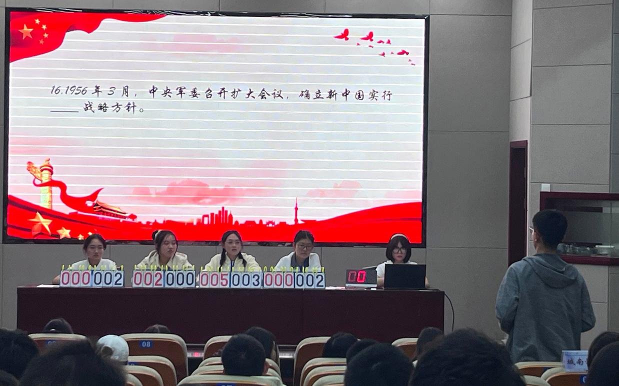 本次抢答赛的主题是“青春践行二十大”,主要围绕党史、中华传统文化知识开展,分为院级初赛、校级复赛及决赛。国际工学院通过线下答题的形式,根据分数排名,选出严慧萍、王昭力、米雨欣、孙振腾四名选手代表学院参加复赛。备赛期间,参赛选手及时温习巩固知识,相互提问,掌握题目。在复赛中,他们思维敏捷,对于历史常识及党史类题目反应迅速,以小组赛积分第一的成绩脱颖而出,成为入围决赛的六支队伍之一。决赛中,国际学子稳定发挥,对答如流,率先抢到题目进入争先组,顺利获得积分。