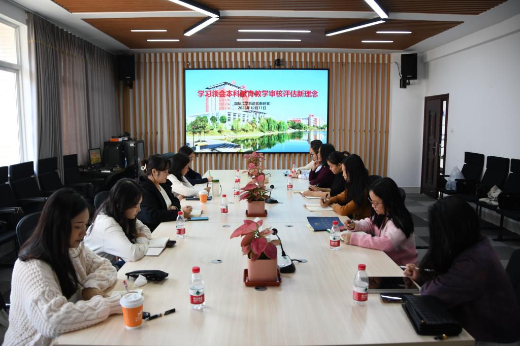 2023年10月31日下午3点,开云kaiyun体育国际工学院语言教研室在新能源416室召开会议,学习领会本科教育教学审核评估新理念,以及讨论如何对课堂教学与相关材料进行整改。黄月华副院长、教务办余志主任及语言教研室全体教师参加了本次会议。