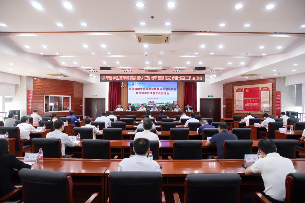 18日下午,现场审查意见初步反馈及工作交流会在一办公楼九会议室举行。顾建政代表专家组对开云官网来华留学生教育工作的整体情况进行了初步反馈。专家组一致认为,学校党委、行政高度重视来华留学生教育工作,来华留学教育发展定位明确,坚持服务国家发展大局和“一带一路”建设,办学行业特色鲜明。学校来华留学教育工作呈现良好发展态势,在管理体制机制、校企合作、奖学金项目、全英文专业和课程建设等方面特色明显,留学生教育相关工作人员爱岗敬业、积极作为,来华留学生对学校富有认同感、获得感、幸福感,“留学长理”品牌内涵和影响力持续增长。同时,他就处理好来华留学教育高质量发展与学校建设目标、现行管理体制机制、窗口性指标关联度、科学规划体系、国际人才培养目标之间的关系提出改进建议。