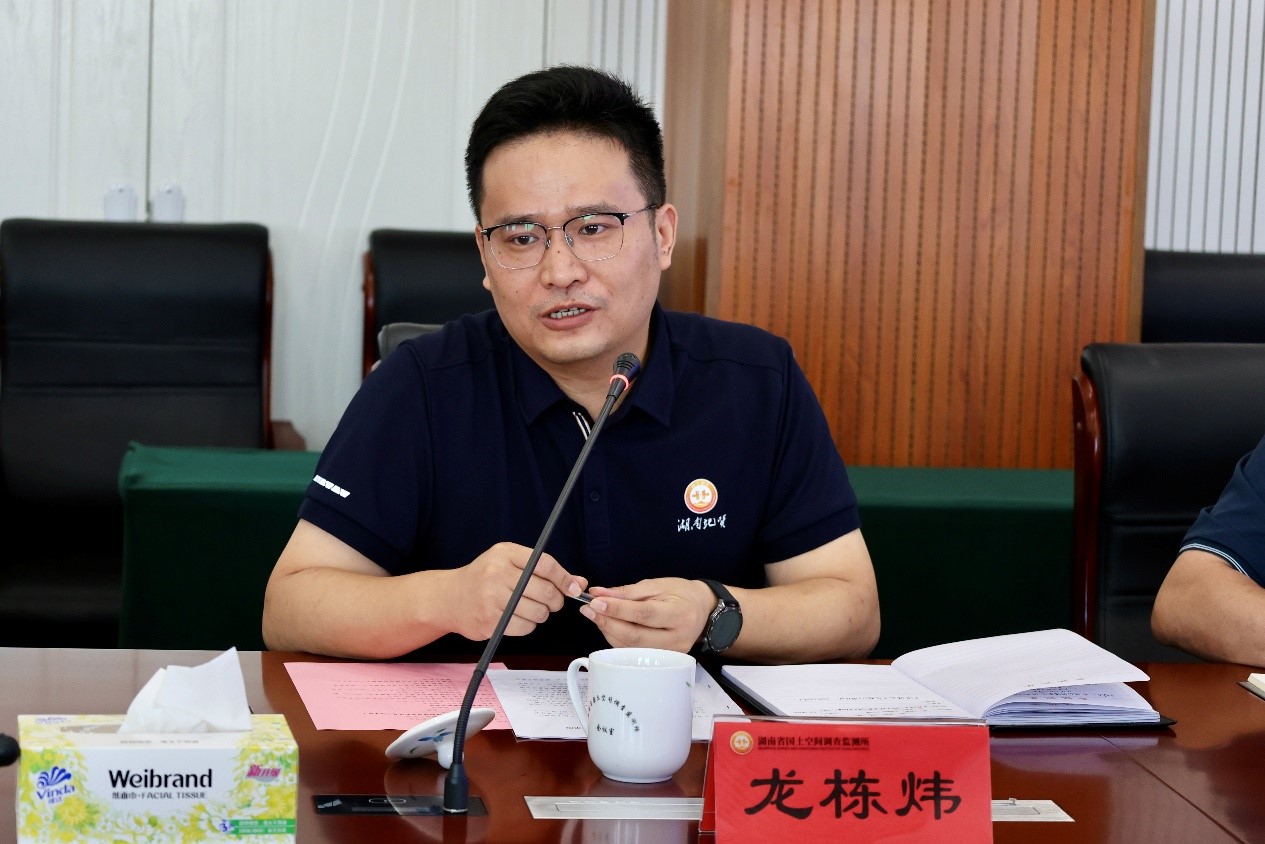 随后,文丽丽介绍了学院办学基本情况、核心学科特色、人才培养体系,邢学敏重点分享了学院在遥感技术应用、地质灾害智能监测等方向的科研优势,以及在地质灾害监测、地理信息系统开发等领域的创新成果。他们表示,期待以此次交流为契机,通过共建产学研合作平台,构建人才共育机制,进一步推动科研资源互补与优势叠加,促进科技成果高效转化,共同为湖南省地质灾害防治能力提升及应急管理体系建设提供坚实技术支撑。