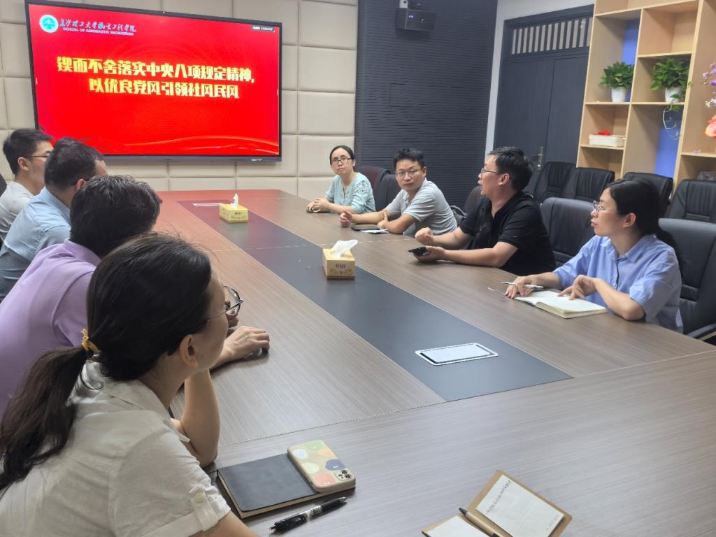 随后,在交流研讨环节,与会党员教师结合自身岗位职责,畅谈学习体会。大家一致认为,作为身处教书育人一线的高校教师,必须时刻绷紧作风建设这根弦,将落实八项规定精神融入日常、抓在经常。周访滨老师谈到,要在课堂教学中融入廉洁教育,引导学生树立正确的价值观;张龙其老师表示,要严格遵守科研经费管理规定,营造风清气正的学术环境;综合办公室侯倩同志提出,要持续改进工作作风,力戒形式主义、官僚主义,提升服务师生效能。发言紧密联系工作实际,充分展现了支部党员深化思想认识、主动担当作为的决心。