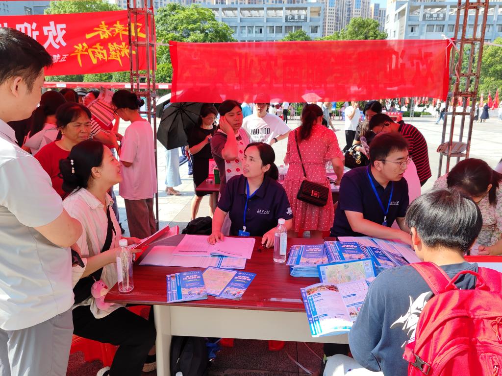 6月28日校园开放日当天,学院精心布置咨询展区,通过图文展板、招生简章等形式立体呈现办学特色。刘斌、许珊两位老师为来访家长提供"一对一"咨询服务,详尽讲解专业特色,结合考生实际情况给予报考建议,同时分享学生获奖成果和校园文化生活,帮助家长全面了解学院人才培养体系。