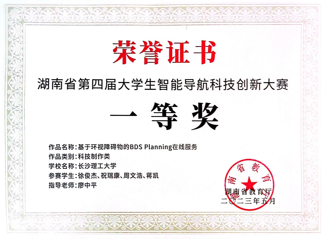 凭借自学打下的基础和比赛锤炼出的实战能力,我在大三这一年开发了不少项目去参加比赛。在廖老师指导下,我拿到了湖南省智能导航竞赛一等奖。之后我还开始接触激光点云、Cesium地球、SLAM等技术,尽管没拿到更多高级别奖项,但我能感觉到自己解决实际技术问题的能力在稳步提升。