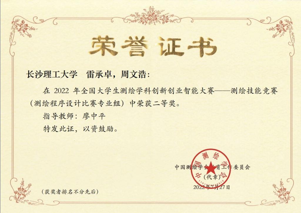 转折发生在大二下学期的测绘学科创新创业智能大赛选拔期间。我在选拔中脱颖而出——当时周围几乎全是大三的学长学姐,没有同年级的熟悉面孔,我自认为希望不大,只是按要求完成了选题。没想到我是第一个提交的,用廖老师的话说,“让我眼前一亮”。这也正常,毕竟之前我已经有了一些积累和基础。虽然程序仍有不足,但廖老师还是通过邮件选择了我。随后的暑假集训备战过程中,我在全国测绘大赛中因不够细心只拿到二等奖,但整个过程中我感觉能力有了质的飞跃。