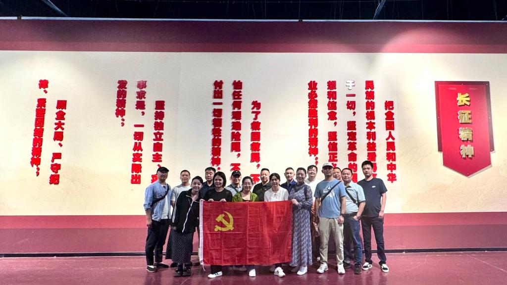 在红军根雕博物馆,全体党员列队聆听讲解员介绍以“红军二万五千里长征”为主题的大型根雕。根雕全长100米、宽2.5米、高3.8米,用600多吨千年樟木树根雕刻而成,展示了遵义会议、四渡赤水、强渡大渡河等13个长征场景和808位人物的光辉形象,教育后人饮水思源,永远牢记先辈的丰功伟绩。党员们举起右手,庄严宣誓,重温入党誓词,表达了弘扬红军长征的伟大精神、牢记初心使命的信心和决心。