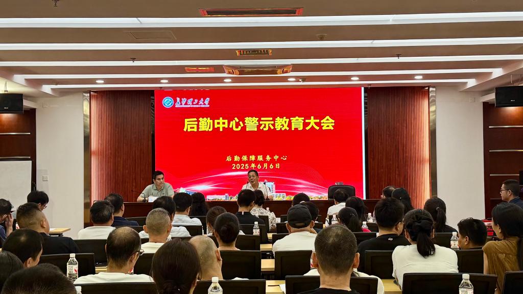 6月6日下午,后勤中心在图书馆B102会议室召开警示教育大会。后勤中心副主任周娇林主持会议。中心全体领导班子成员、各部门班组长以上管理人员、托管食堂项目经理、施工入围单位负责人、原材料入围单位负责人代表共111人参加会议。