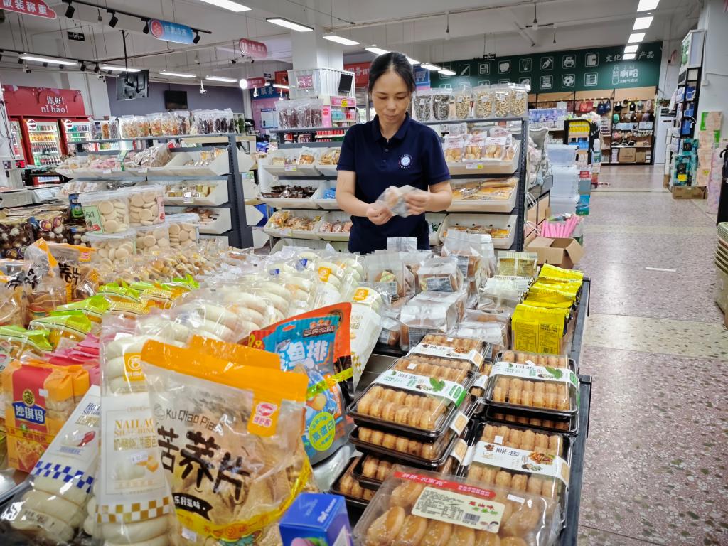 汀香园超市货架前,总有个步履匆匆的身影:刚把柜台的零食摆得整齐划一,又转身核对饮料库存,收银台前排起长队时,她又迅速到收银台顶岗——这个连轴转的人,是肖彩虹。入职时,她是个对超市工作一窍不通的“新手”;如今,已是同事眼中能扛事、懂业务的“全能手”。
