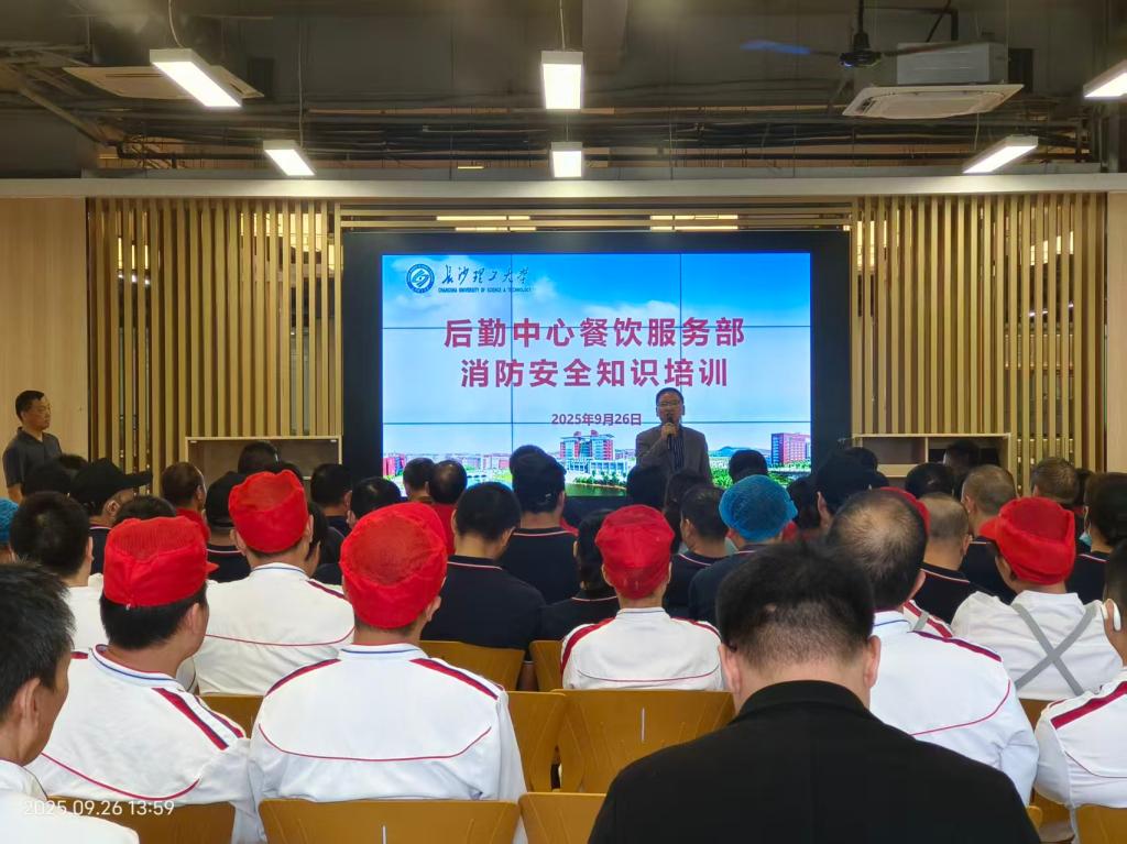 9月26日下午,餐饮服务部在云塘校区汀香园二楼组织开展食堂消防安全专题培训。湖南正邦消防技术服务有限公司教官瞿智威应邀主讲,保卫部部长(主持工作)范电华后勤中心党委书记邓崛峰副主任阳伶出席,餐饮服务部副主任曹罗平主持各食堂负责人、班组长及临火岗位员工200余人参加。