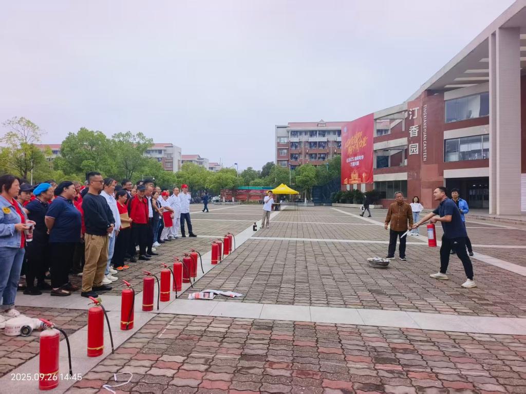 培训中,瞿智威结合典型案例,从消防安全基础知识、设施设备、火灾预防、逃生自救、日常维护五方面展开讲解。理论学习结束后,瞿智威带队至汀香园食堂一楼开展实操教学,示范灭火器、消防防毒面罩等器材使用方法,参训员工逐一上手实践。
