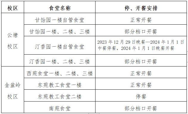 根据学校元旦节放假安排,现将假期各食堂营业时间通知如下: