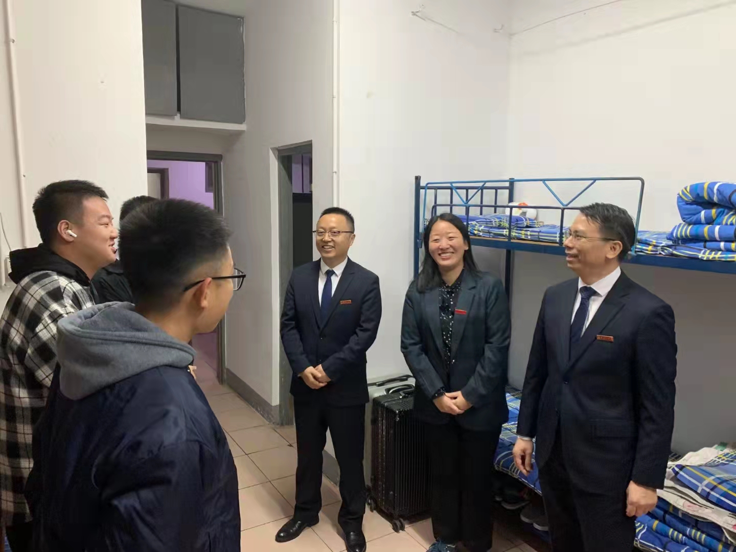 卿志和、喻林萍、周怡波则以及孙佳乐分别走访了西苑6栋和西苑7栋的研究生新生宿舍。卿院长和喻院长肯定了绝大多数研究生在宿舍潜心科研的良好风貌,并与个别研究生就专业研究生方向进行了深入细致的沟通。他们鼓励研究生要多看、多读文献,多跑实验室,在科研之路上迅速成长。最后,几位老师赞赏了研究生宿舍的整体内务情况。